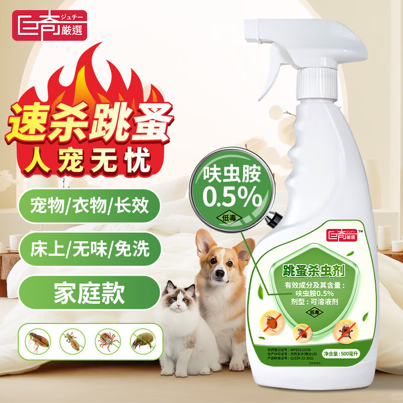 巨奇床虱跳蚤专用杀虫剂床上免洗猫狗可用呋虫胺除吸血虫喷雾剂家庭用,京东销量500w+