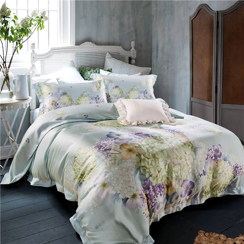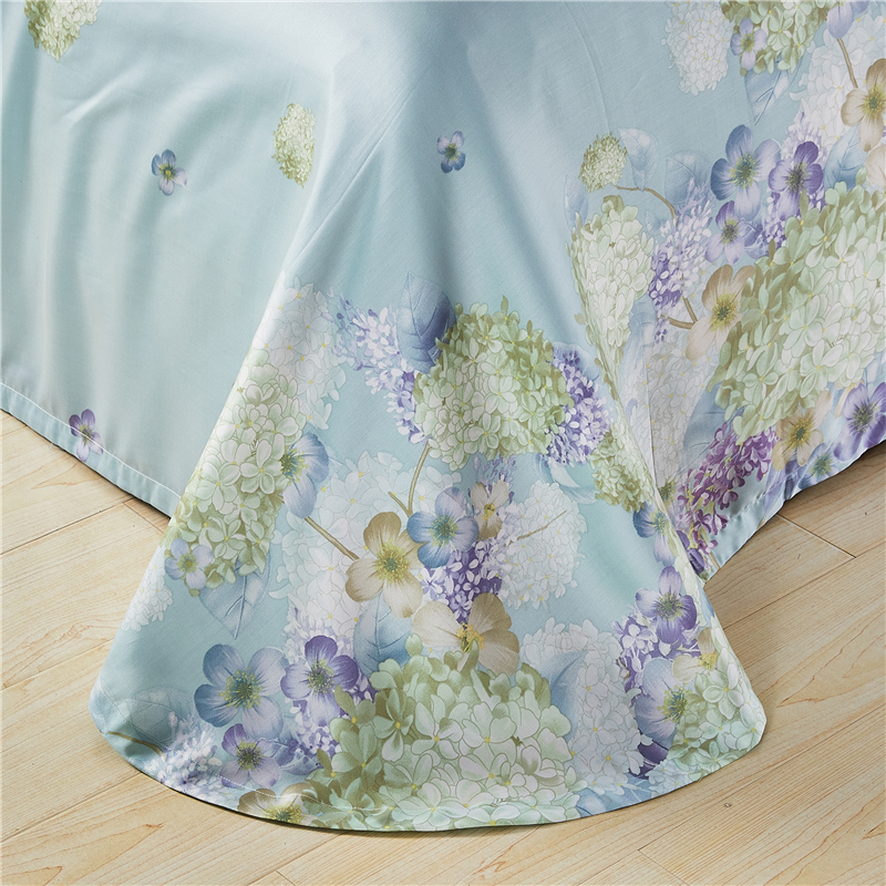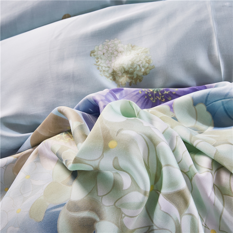 雅兰天丝床单四件套-繁花似锦203*230cm 天蓝色