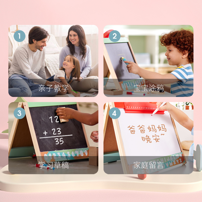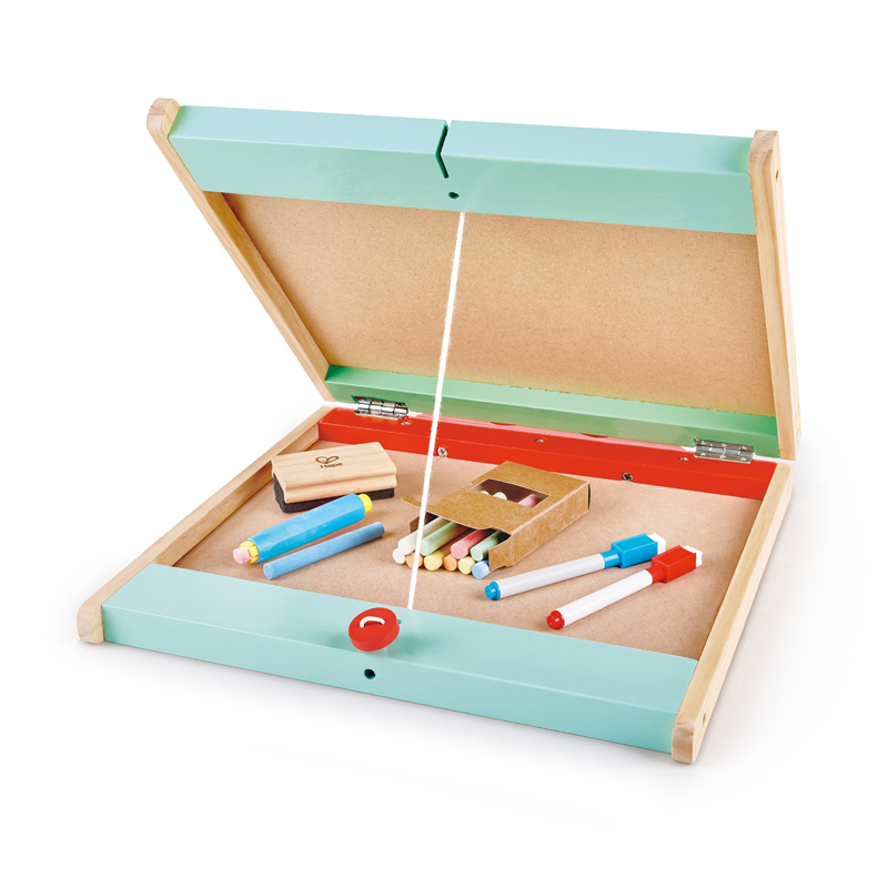 线描、染色或者只是放飞自我地涂鸦,这款三合一画板一定让你称心如意!将画板在桌面架好,小朋友可以在黑板
