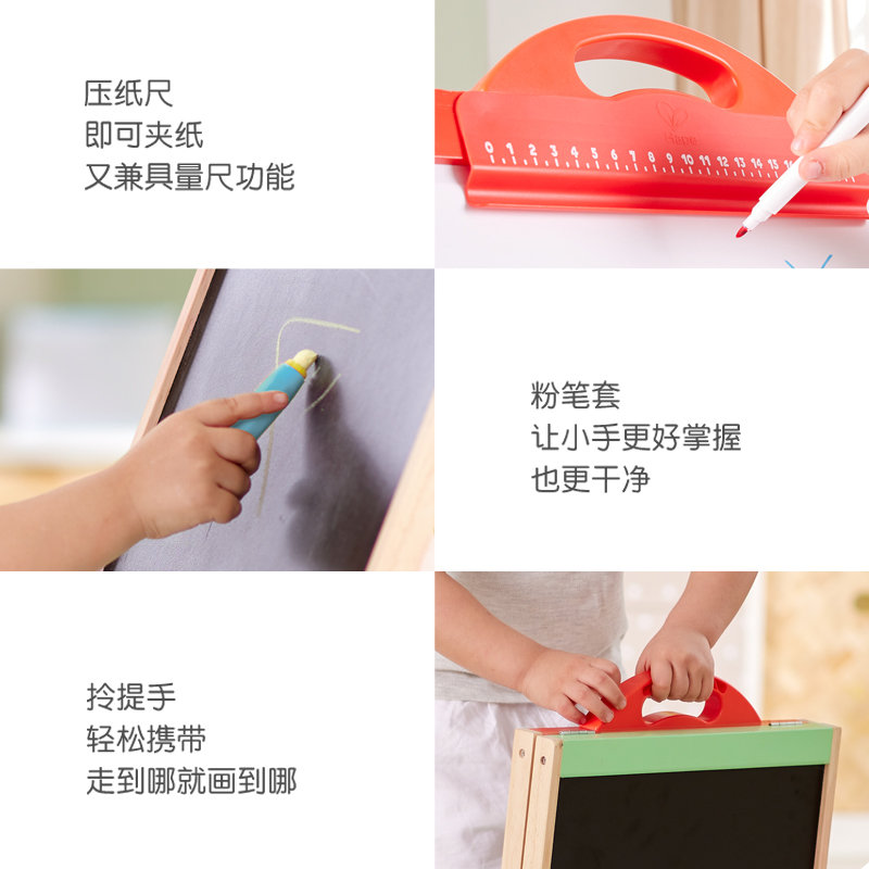Hape(德国)E1062 3岁以上儿童涂鸦写字画画玩具 木制 手提式两用画板(单位:套) 混色
