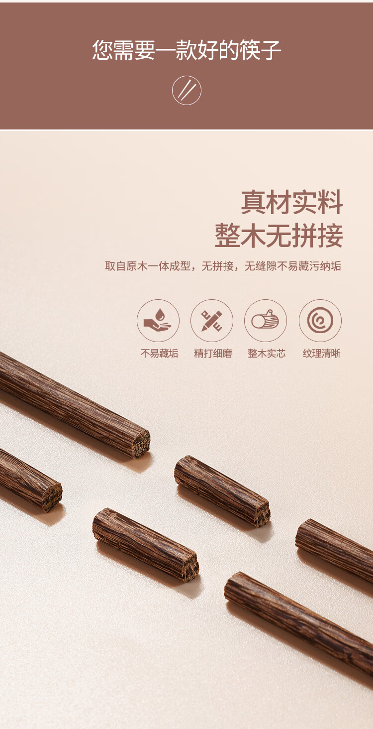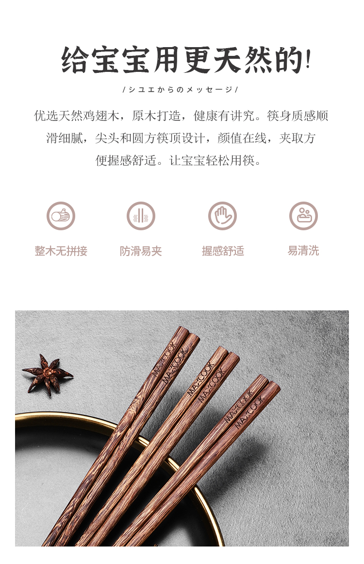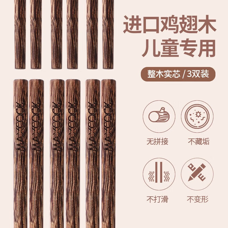 美厨(maxcook)筷子 天然家用无漆无蜡鸡翅木筷子实木筷子 儿童筷3双装MCK3820
