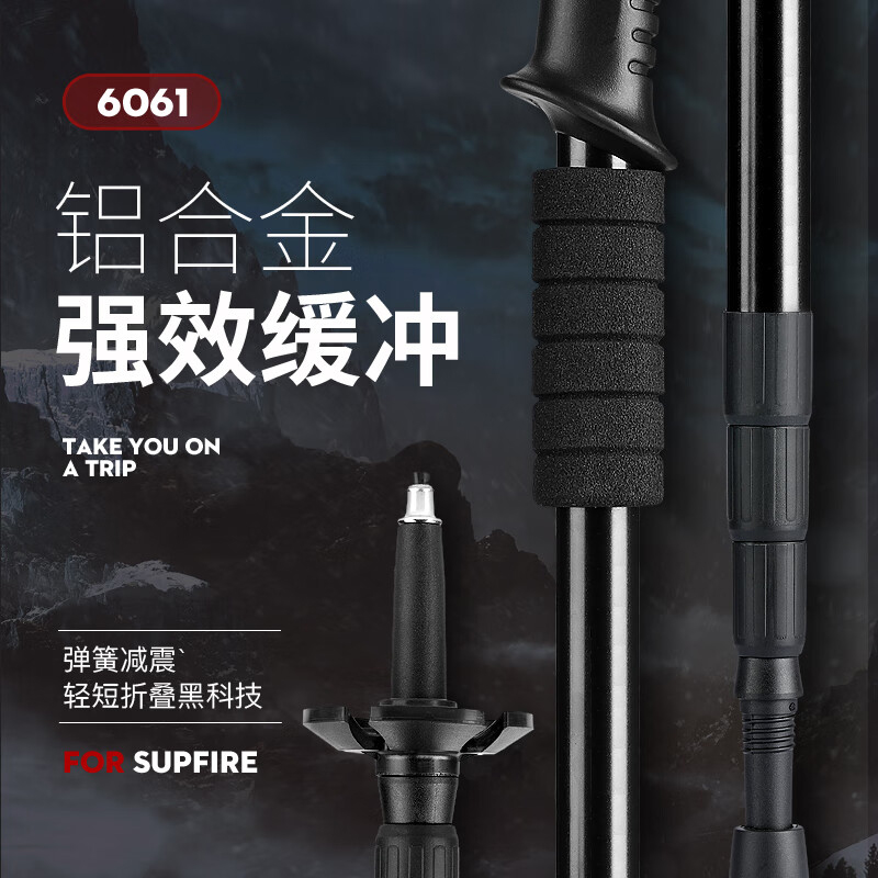 1、铝合金材质,保障产品更轻更坚韧; 2、仿软木EVA手柄,抓握舒适,防滑耐磨; 3、旋转内锁,减缓