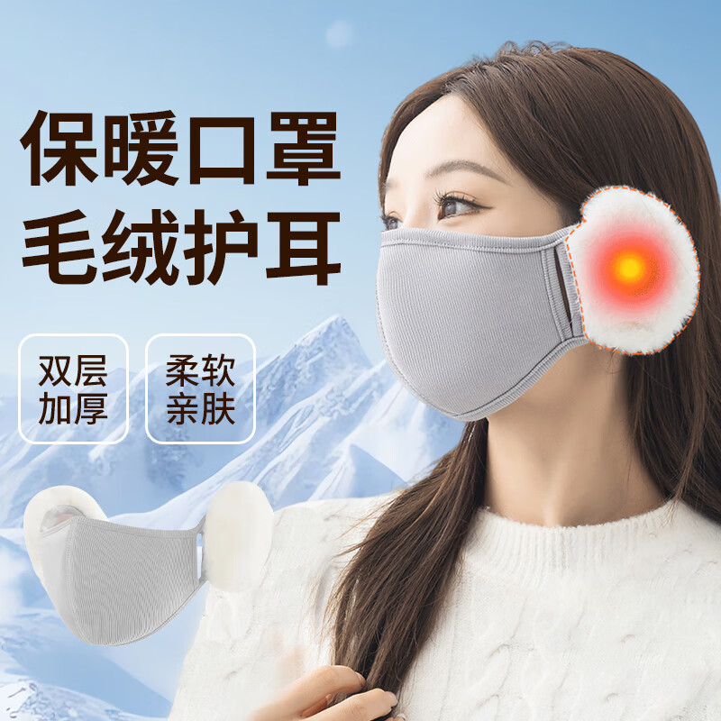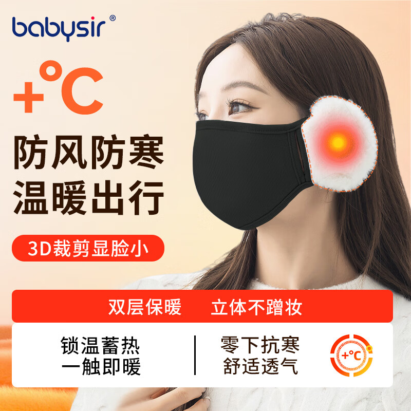 Babysir保暖口罩秋冬防尘高颜值护耳口罩防风防寒骑车护脸面罩可水洗黑色