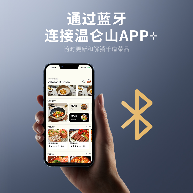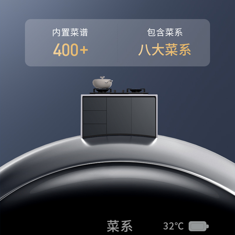 AI智能芯片,语音播报教学,小白也能变大厨; 内置八大菜系,四百多道菜谱,在家轻松做; 智能温控,精