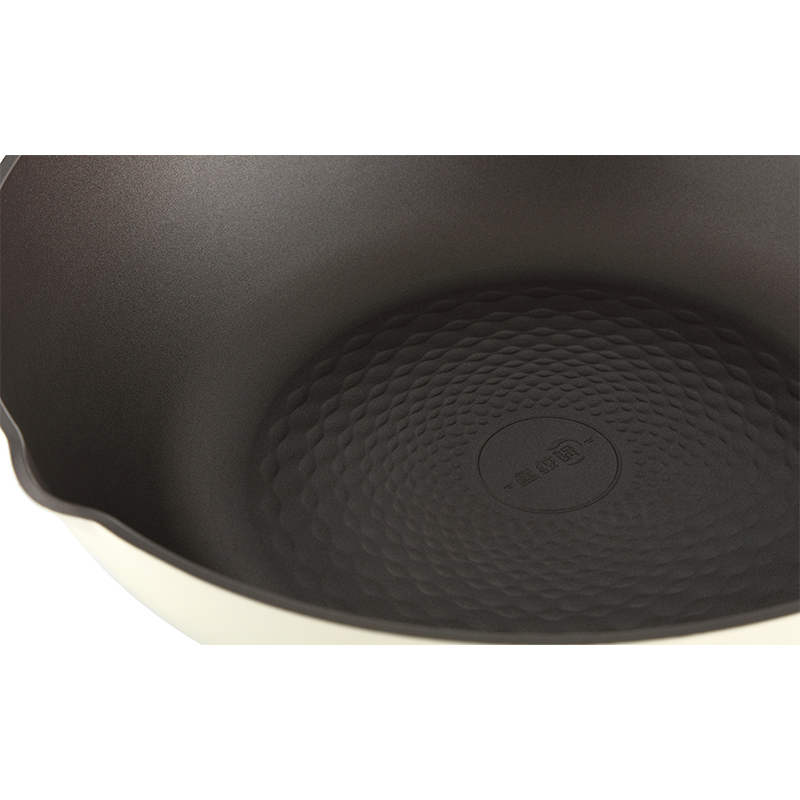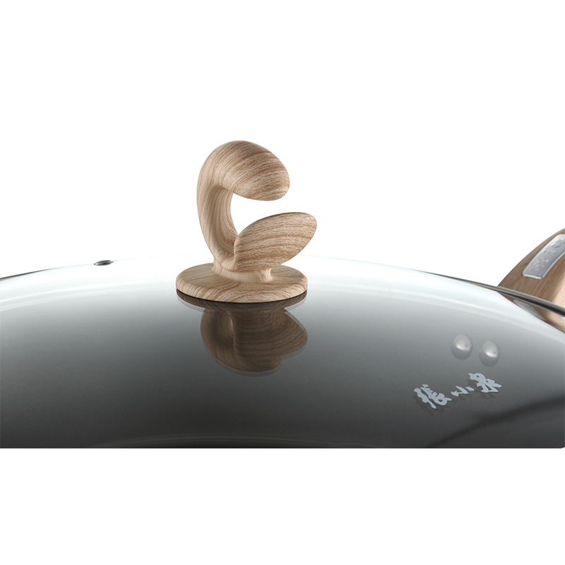有钛健康不粘,烹饪更省心。 专利鱼跃龙门设计,文化赋能。 一体锻打压铸成型,底厚壁薄。 3003合金