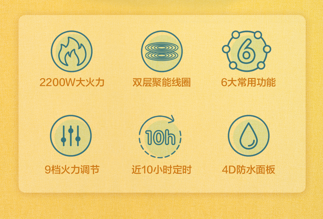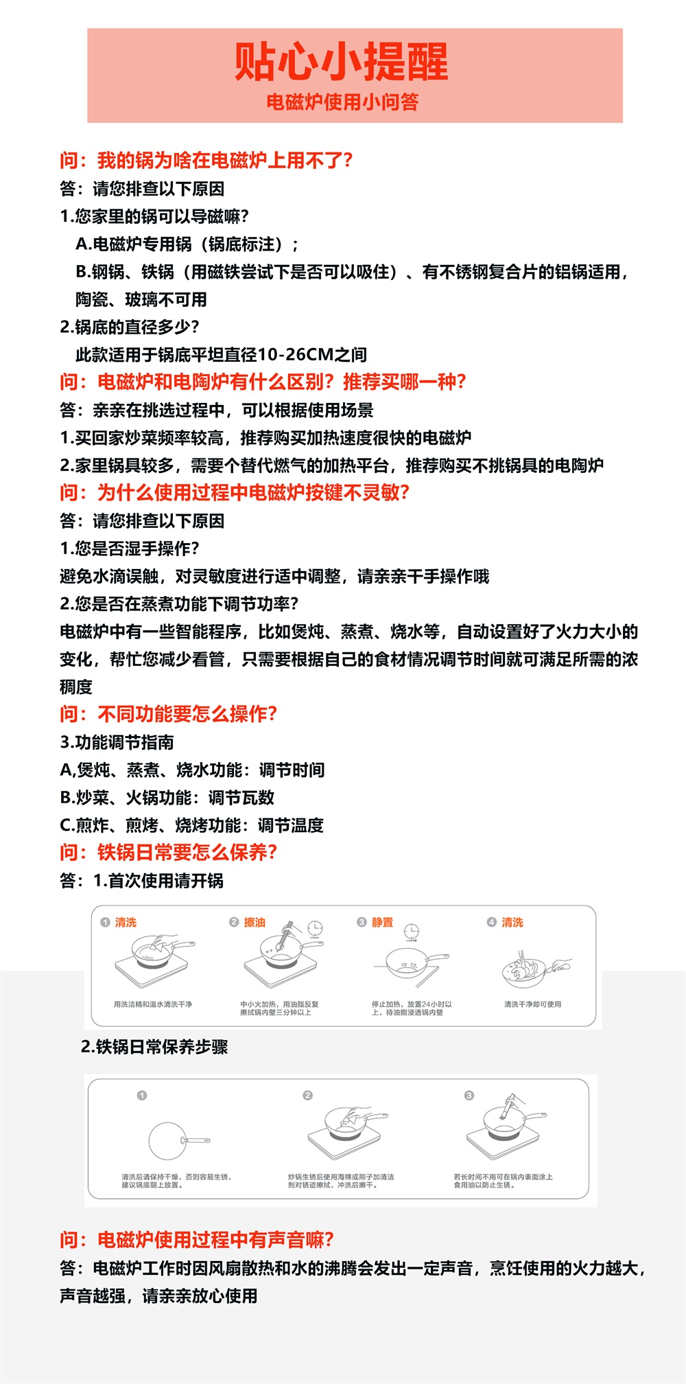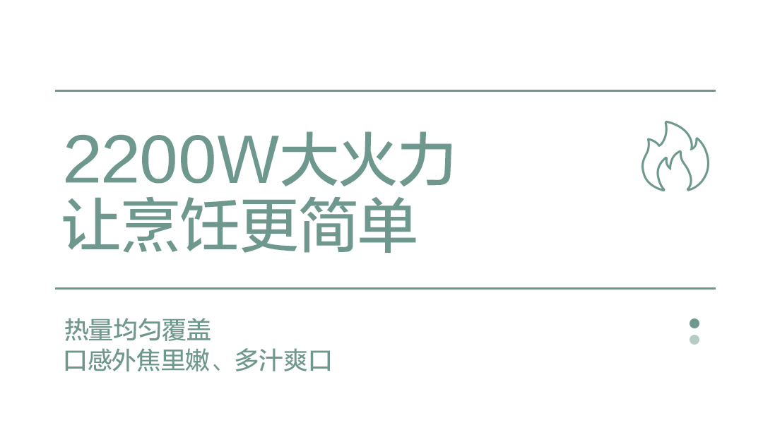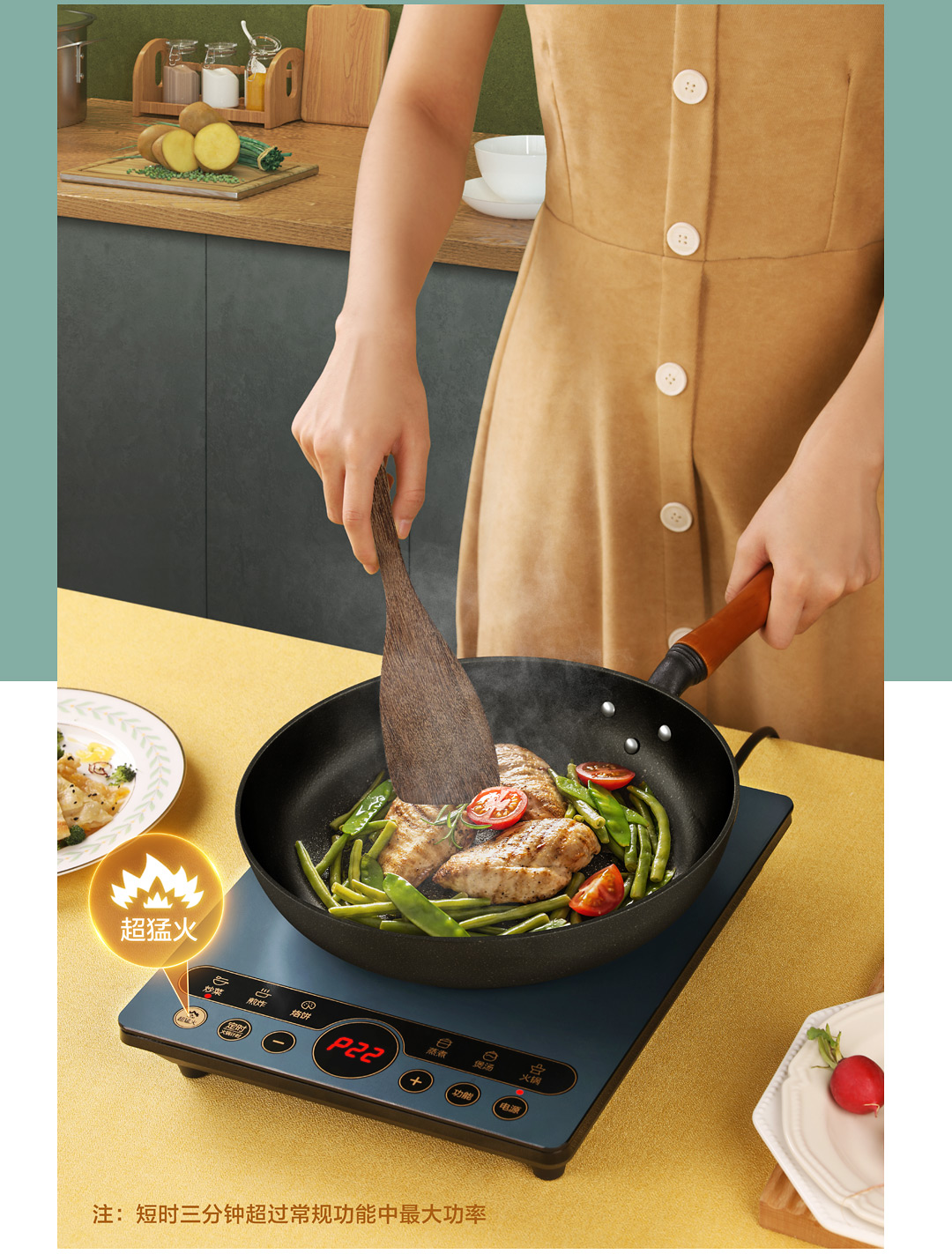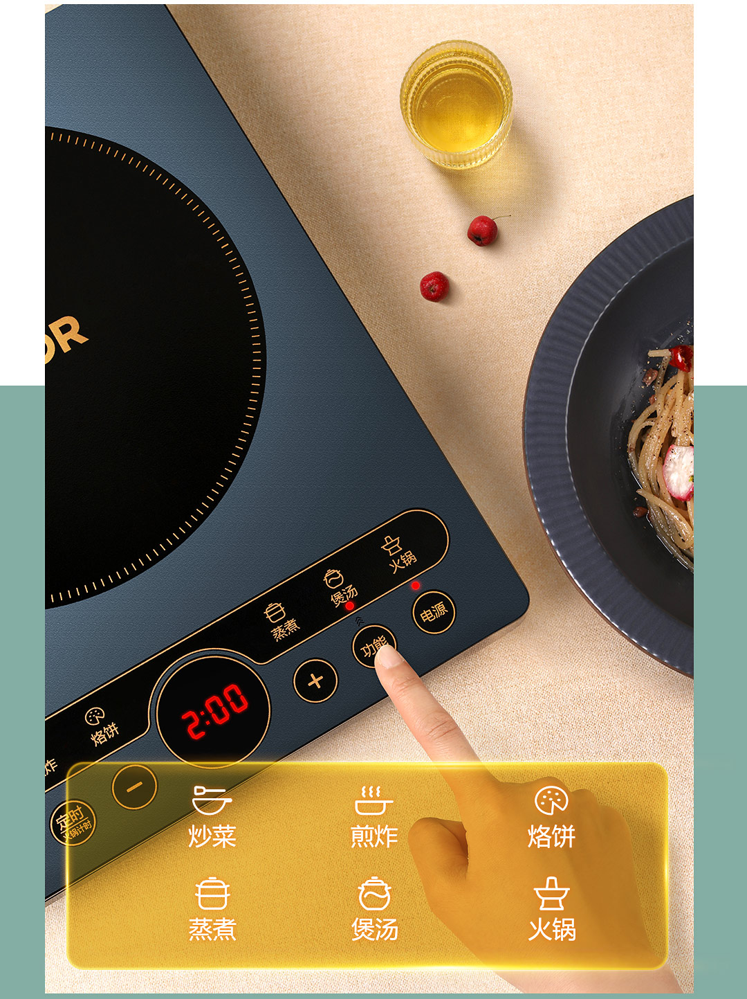 1.特色2200W大火力,升温更快,加热更均匀,锅具不易糊底,菜美味锅好洗; 2机器内设程序,煲炖不