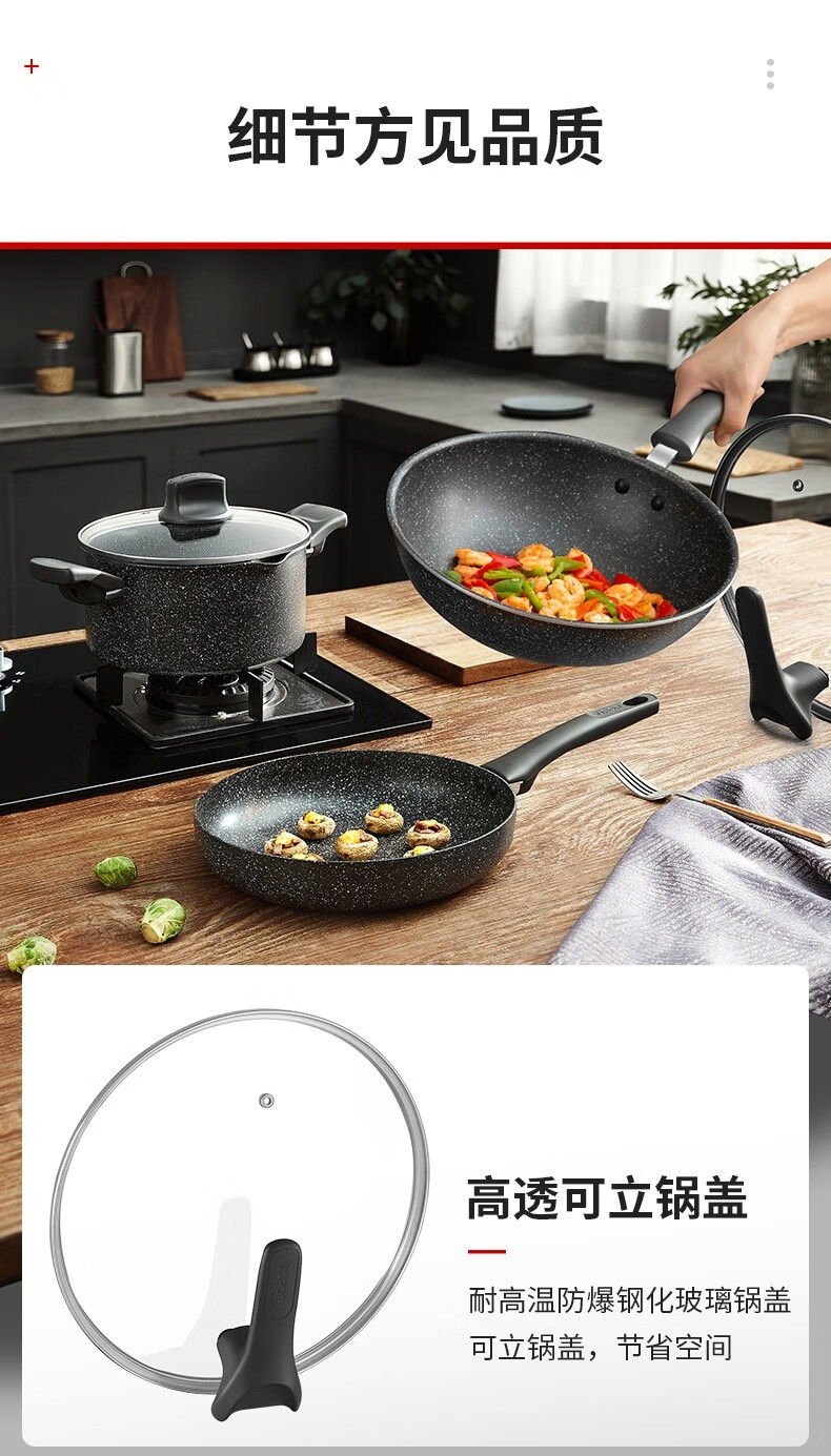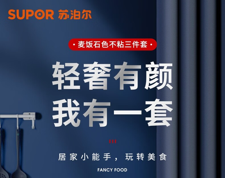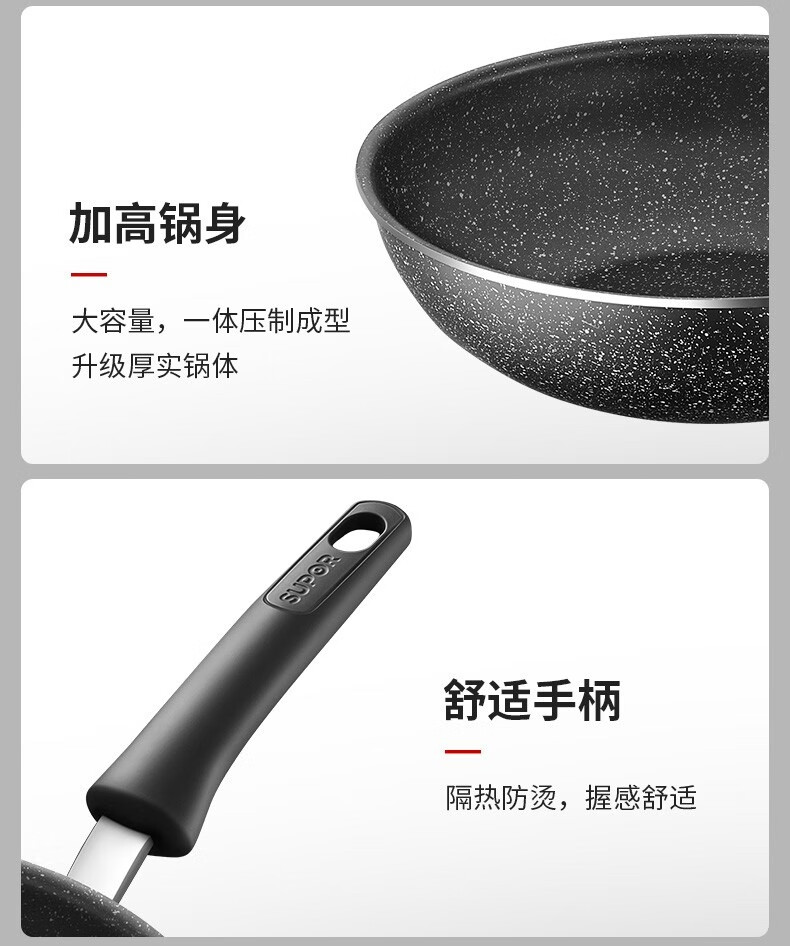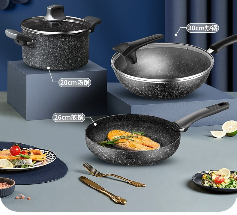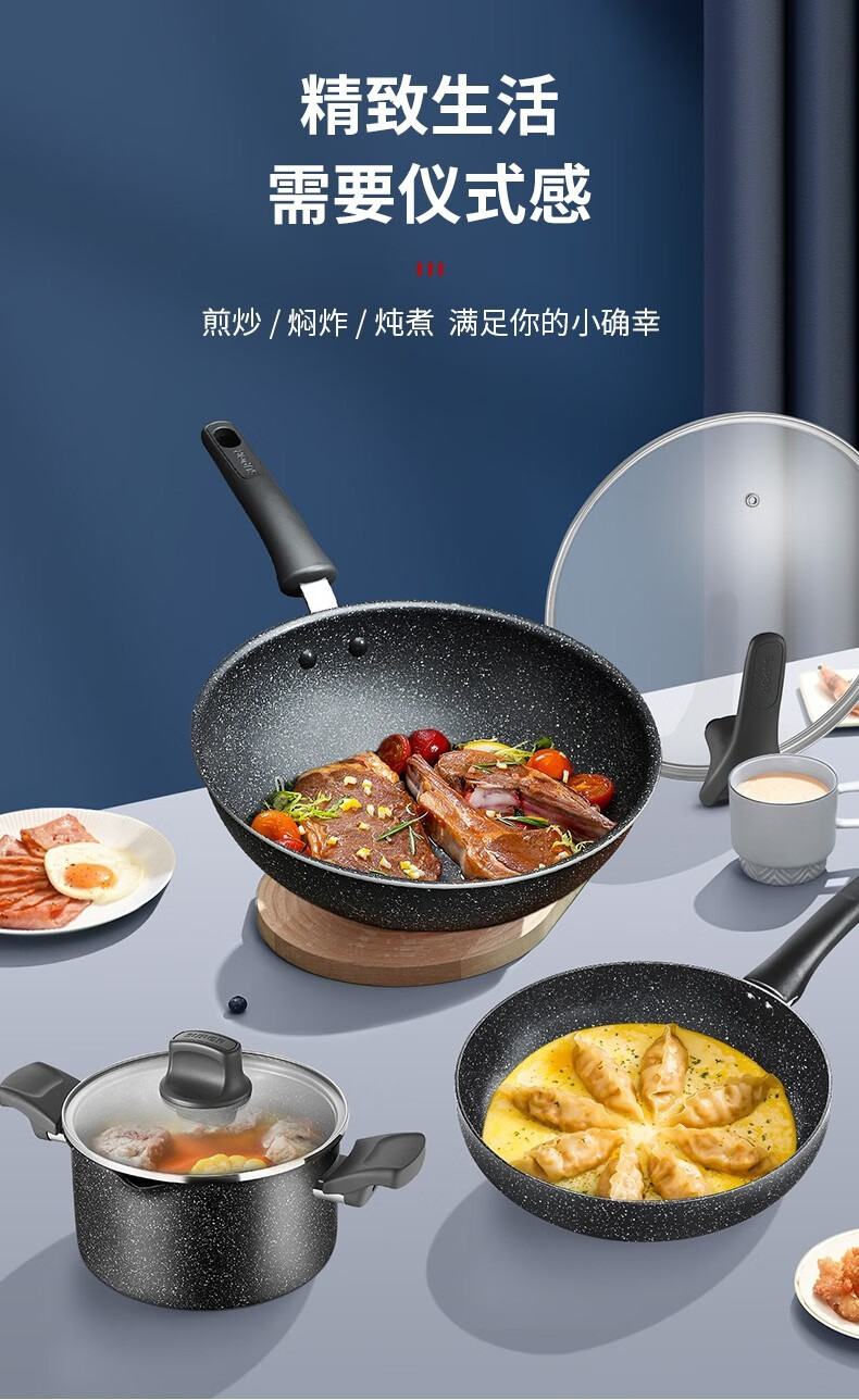 苏泊尔(SUPOR)锅具套装三件套麦饭石色不粘套装TP2128E(单位:套)