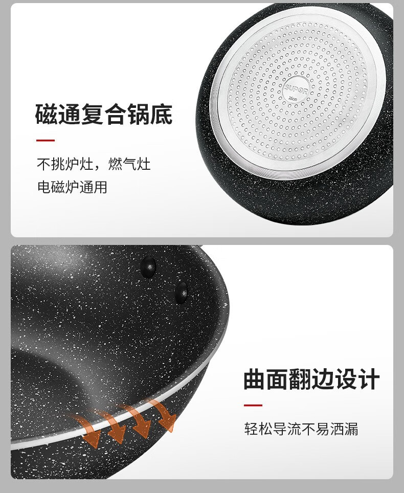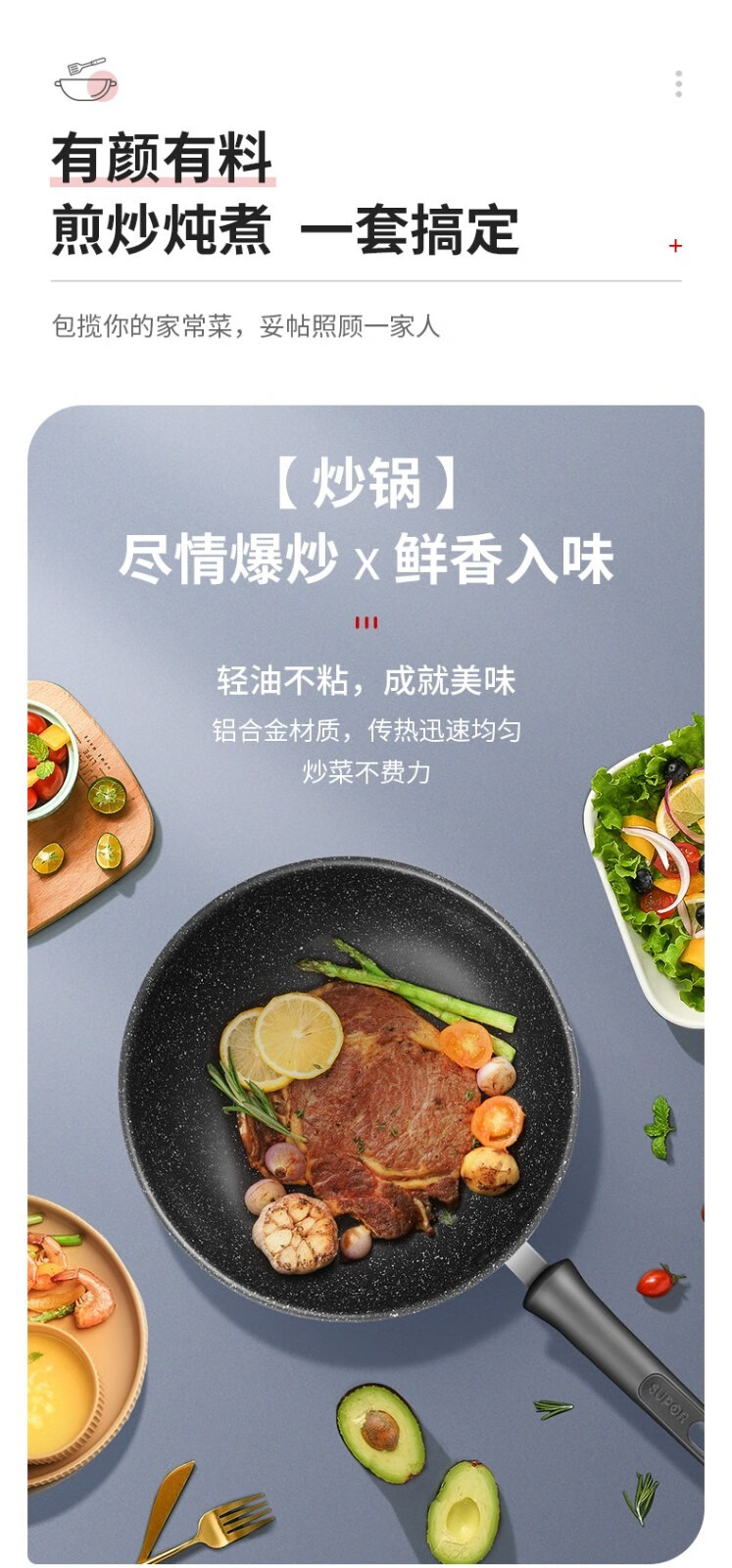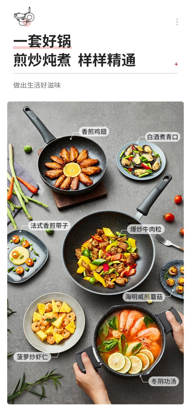苏泊尔(SUPOR)锅具套装三件套麦饭石色不粘套装TP2128E(单位:套)