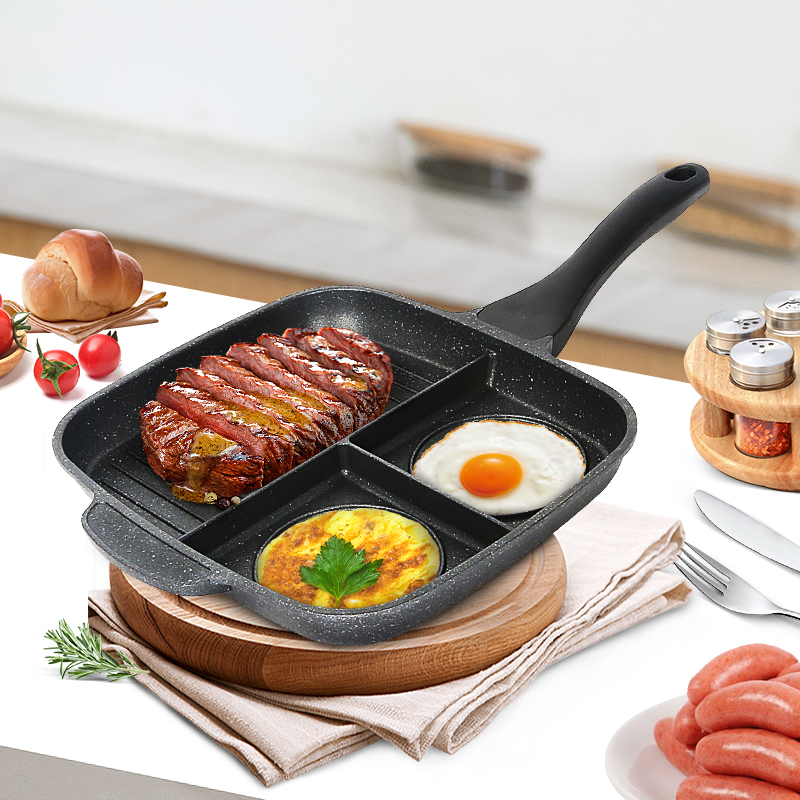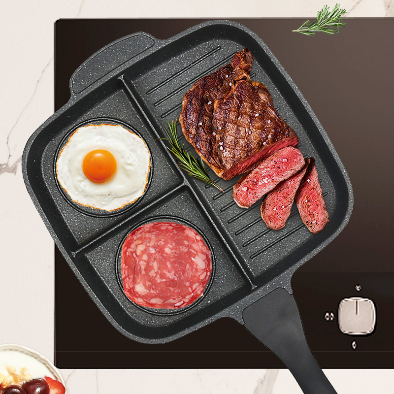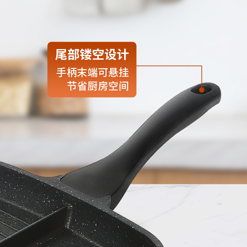 左家右厨三合一银杉系列早餐锅条纹多功能三合一家用不粘平底锅/个 麦饭石色