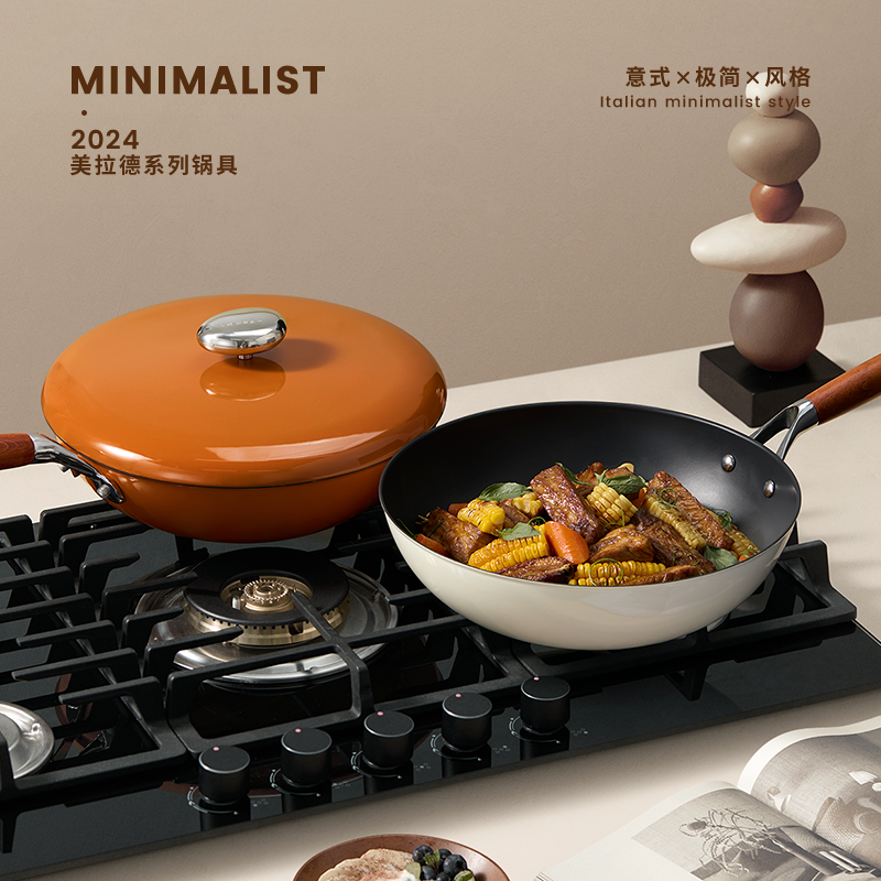 简约风格,高颜值; 优选珐琅,易清洁,不易烧黑; 钛工艺加持,0涂层更放心; 800°高温烧制,一体