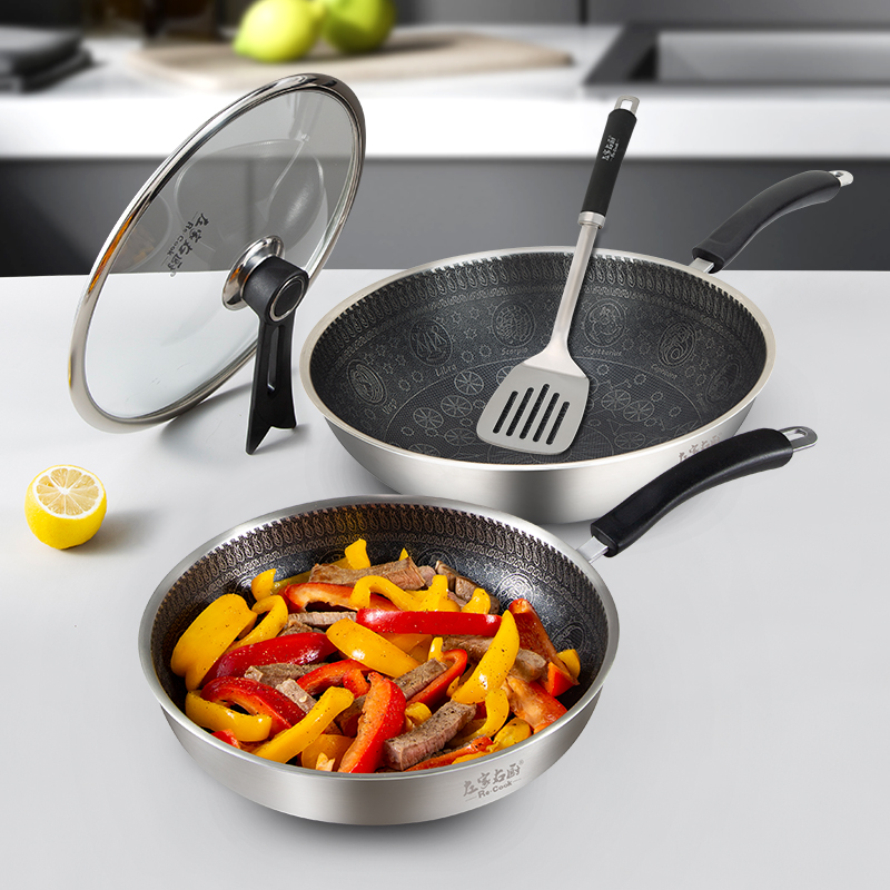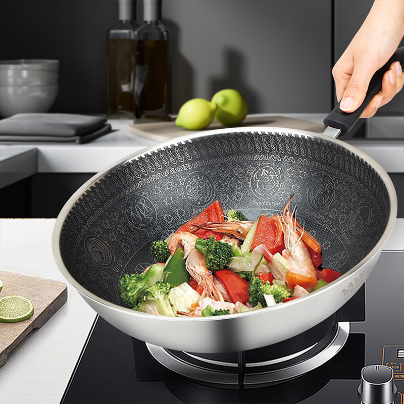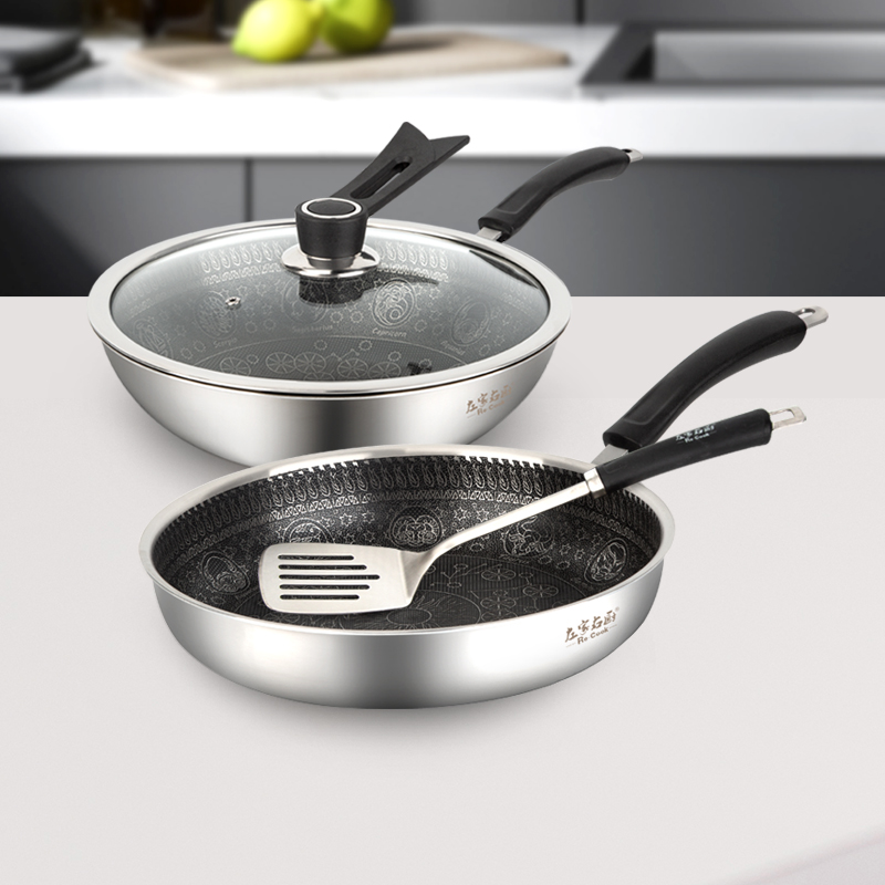 ●锅身表面拉丝,高抛光处理,有效增加锅壁不粘特性,锅身更光泽。底部磁性不锈钢,有效聚热,电磁炉通用,