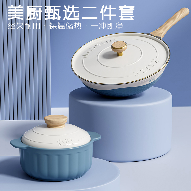 金嫂子(KSISE)美厨甄选二件套 炒锅32cm+陶瓷煲3L K2470TZ2(单位:套) 麦饭石
