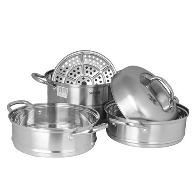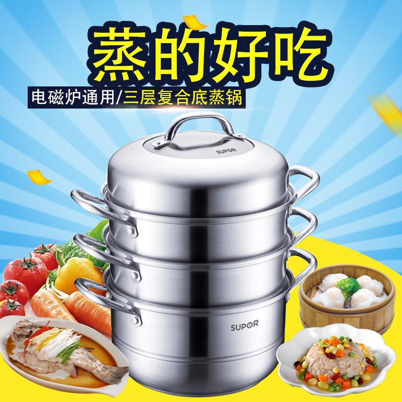 苏泊尔(SUPOR)26cm蒸锅·304不锈钢易存储不锈钢三层复底蒸锅/SZ26B4(个) 不锈钢色