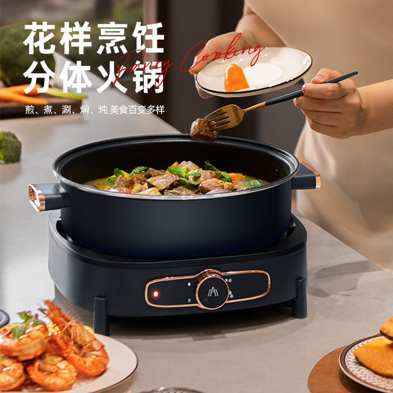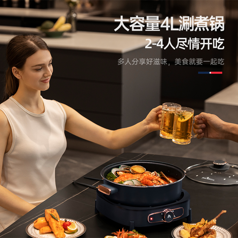 迈卡罗 电火锅4L 电炒锅 电煮锅 多用途锅分体式火锅锅家用 MC-HG416(单位:台) 宝石蓝