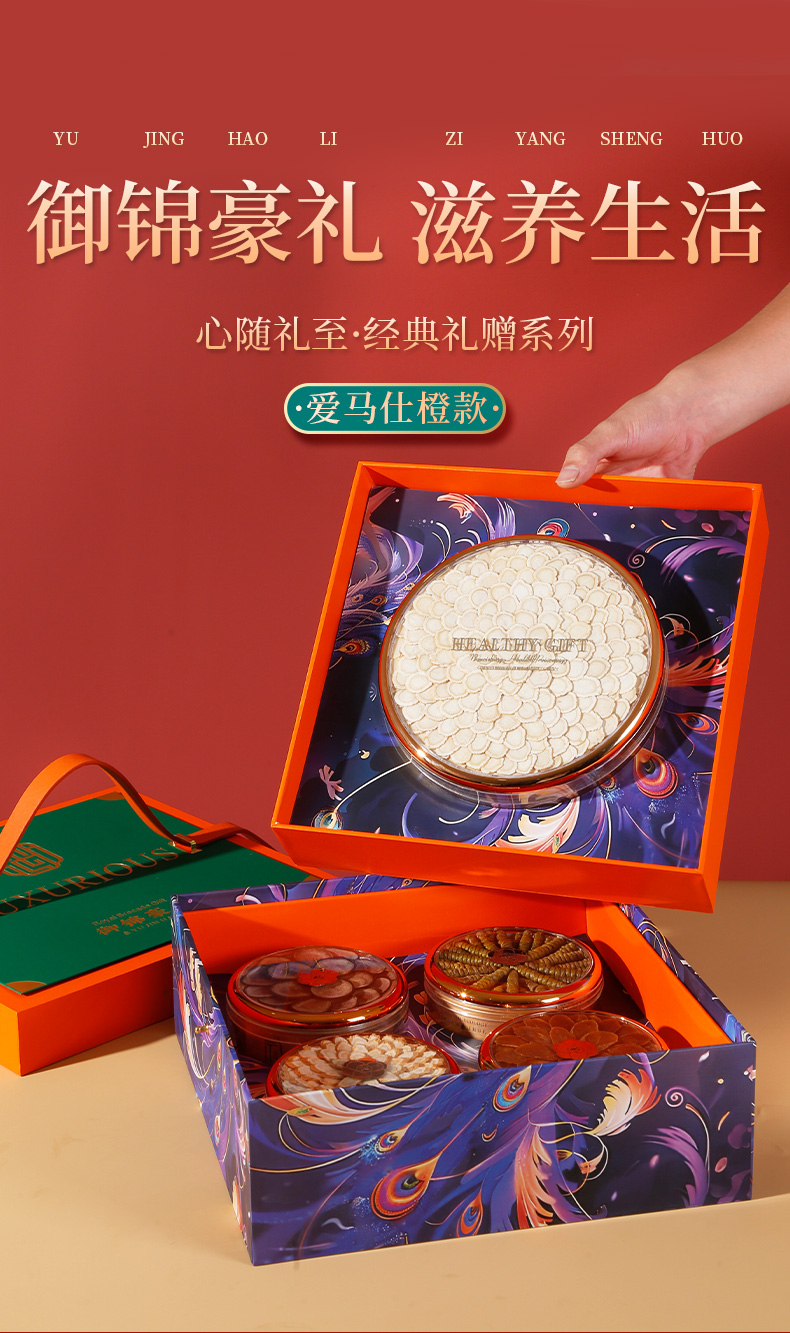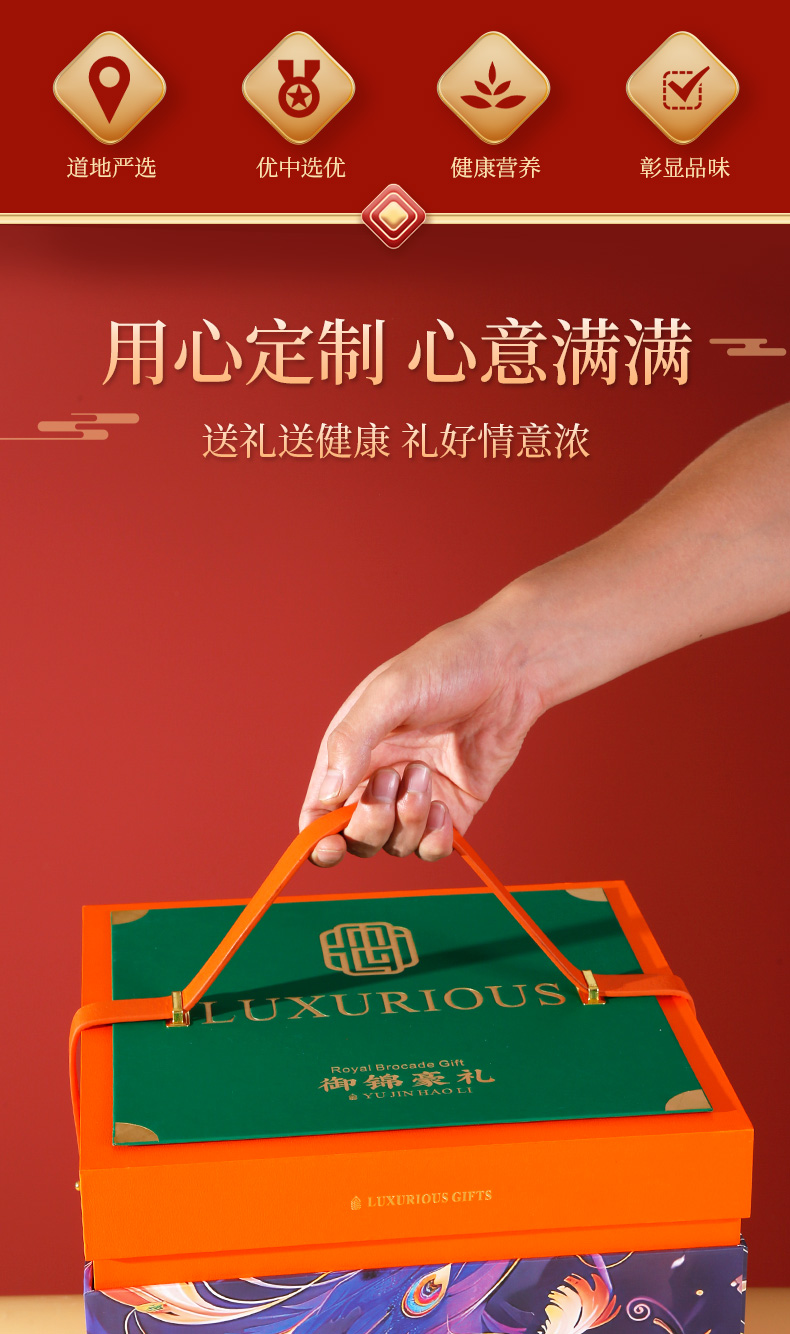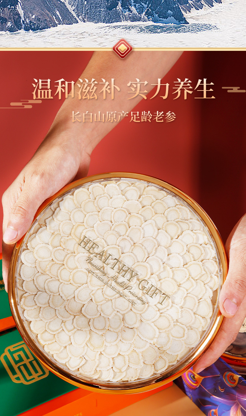西洋参圆片100克+西洋参斜片50克+霍山石斛(龙头凤尾)50克+红参50克+鹿茸8克 精美五福礼