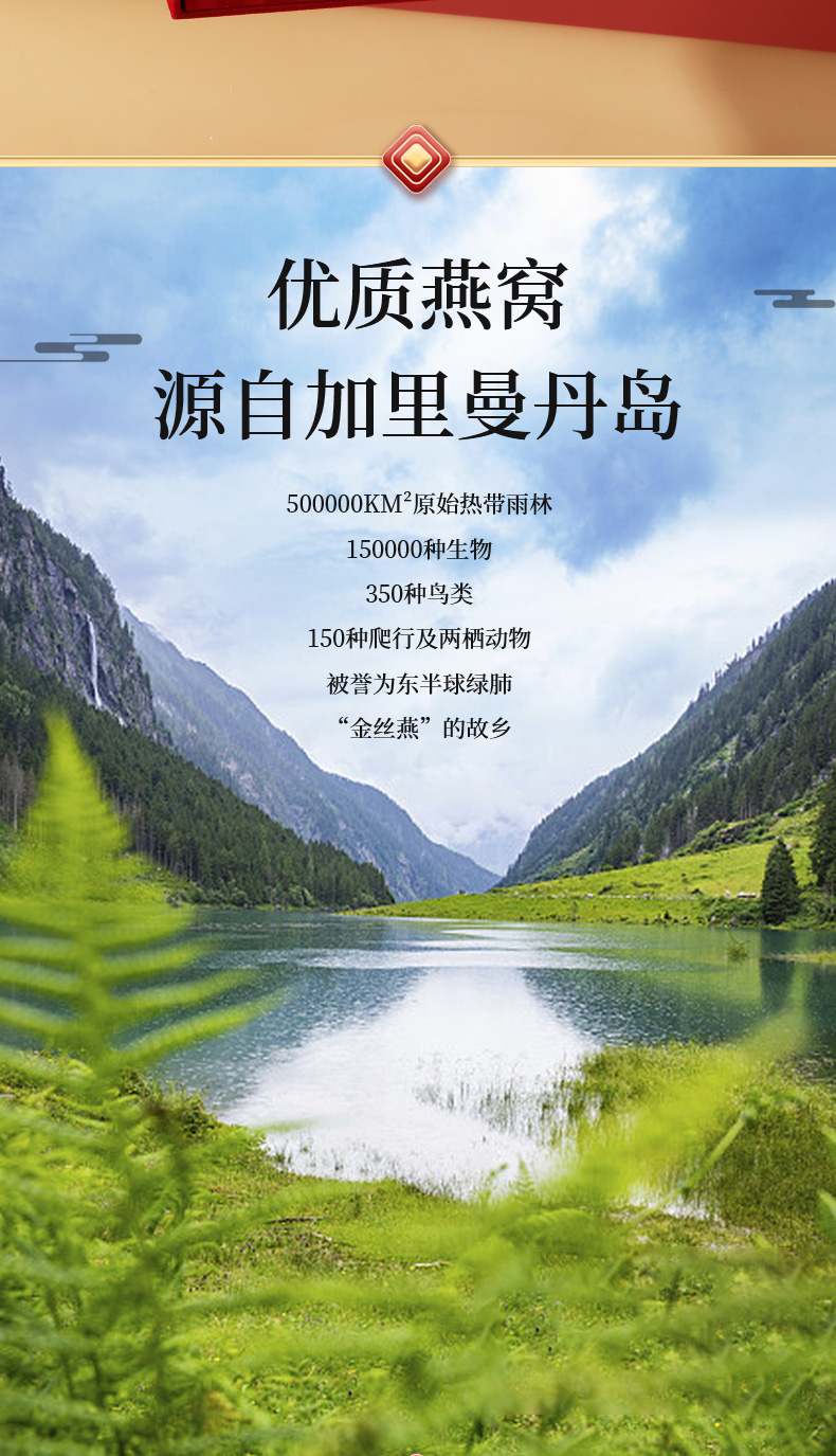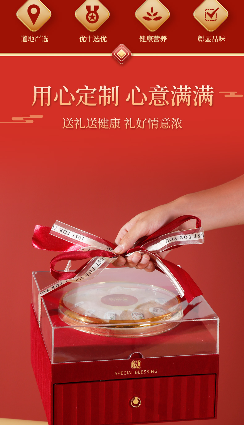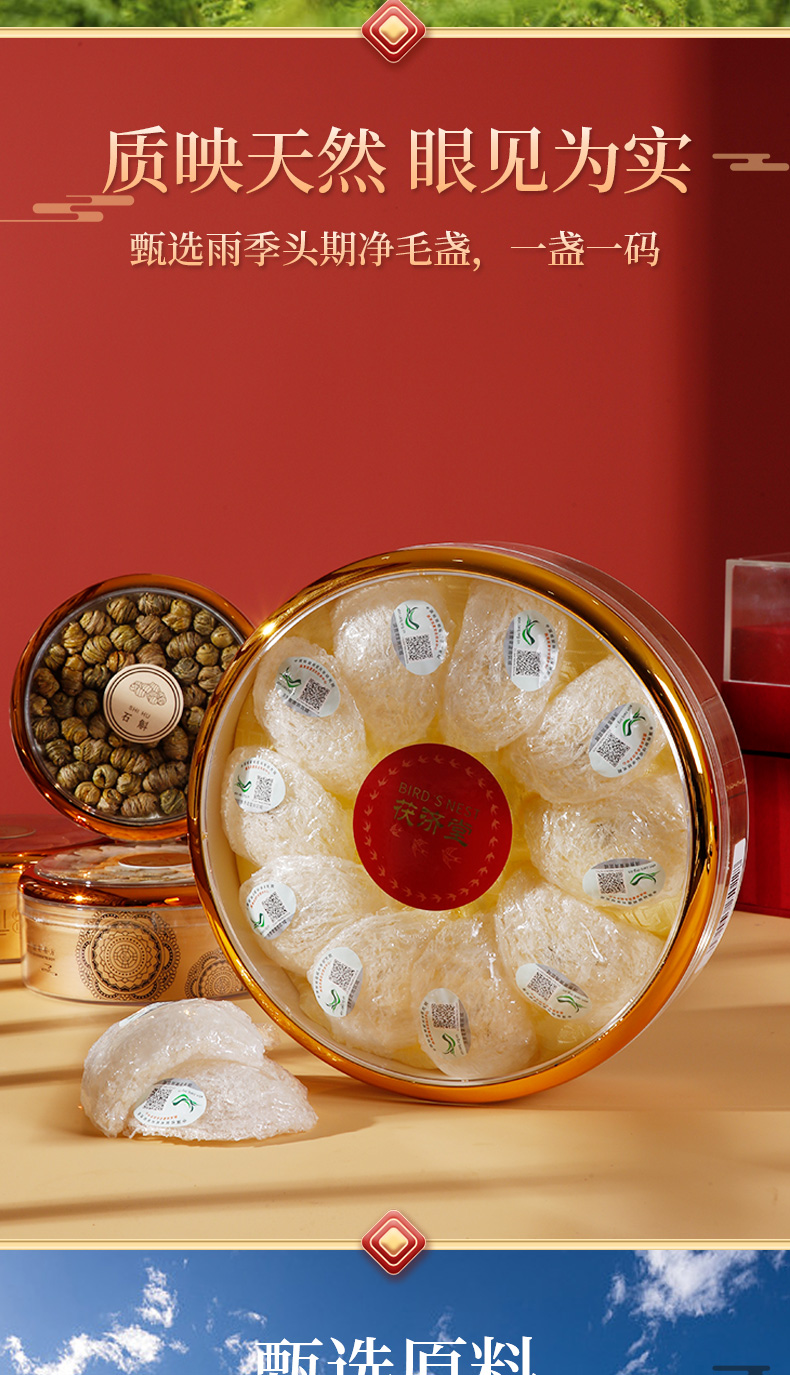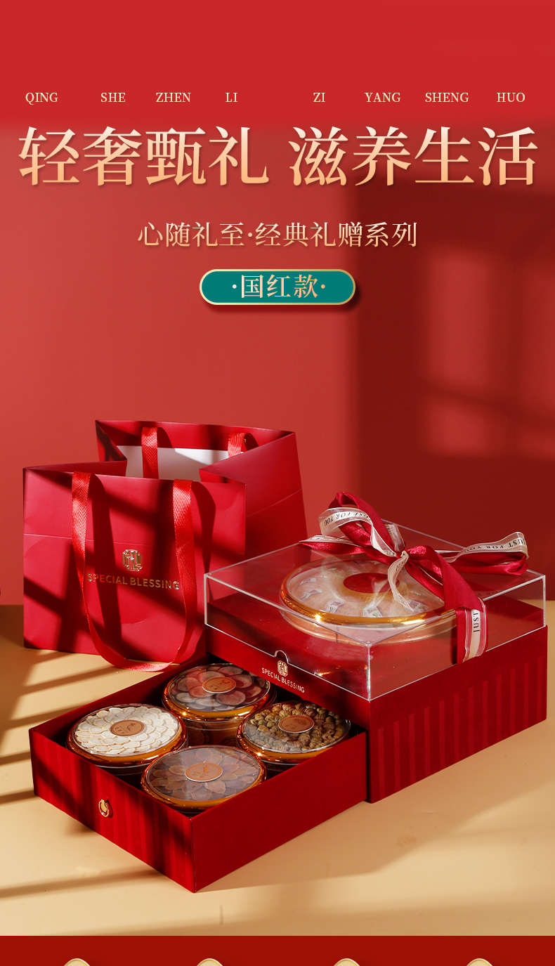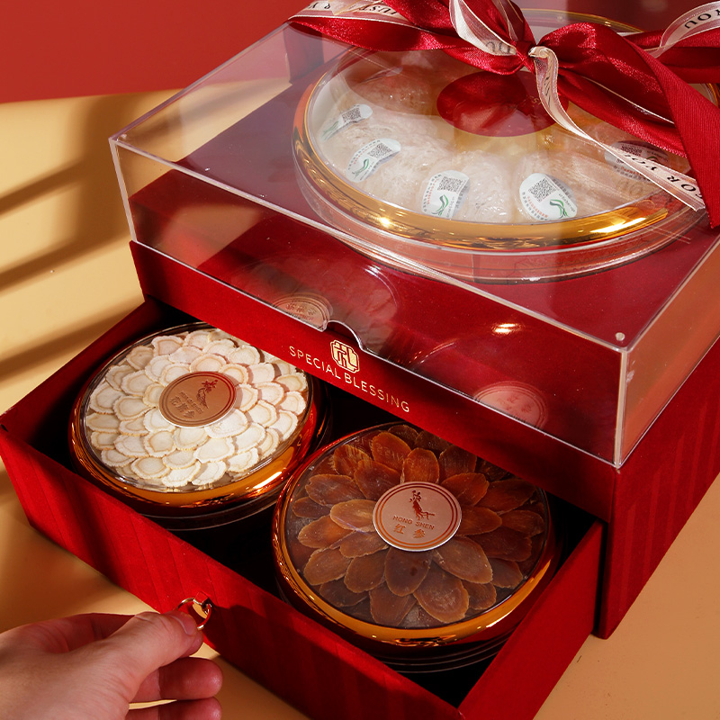 印尼进口燕窝30克+红参30克+西洋参大片30克+石斛50克+鹿茸片8克,精美水晶丝绒五福礼盒,双层