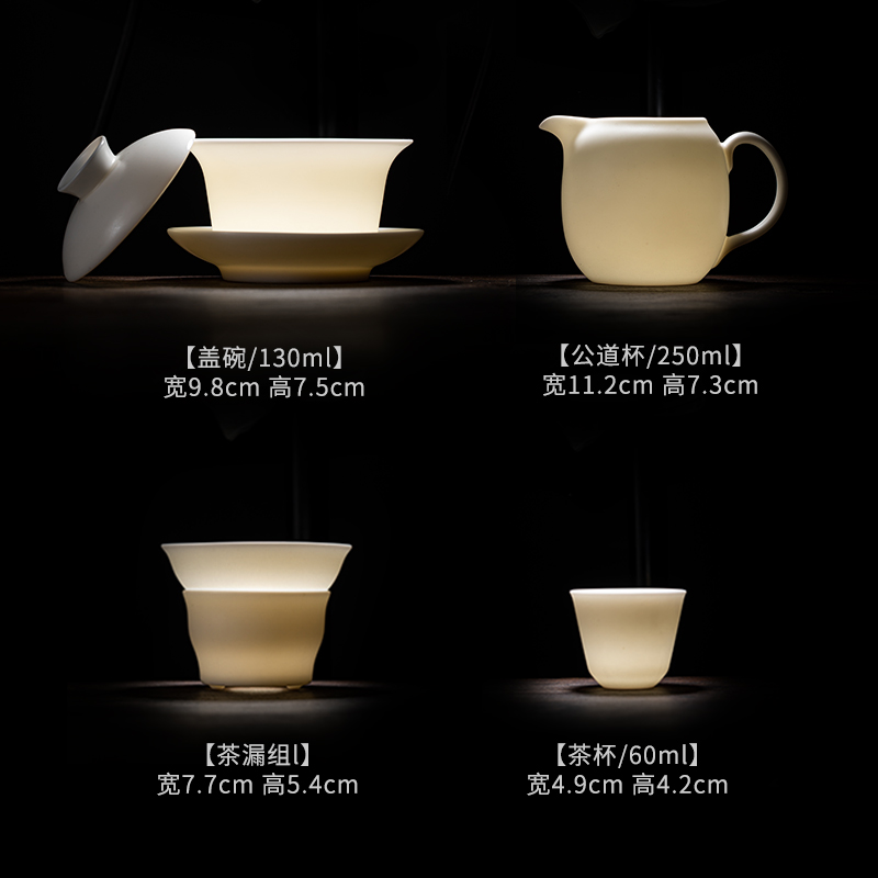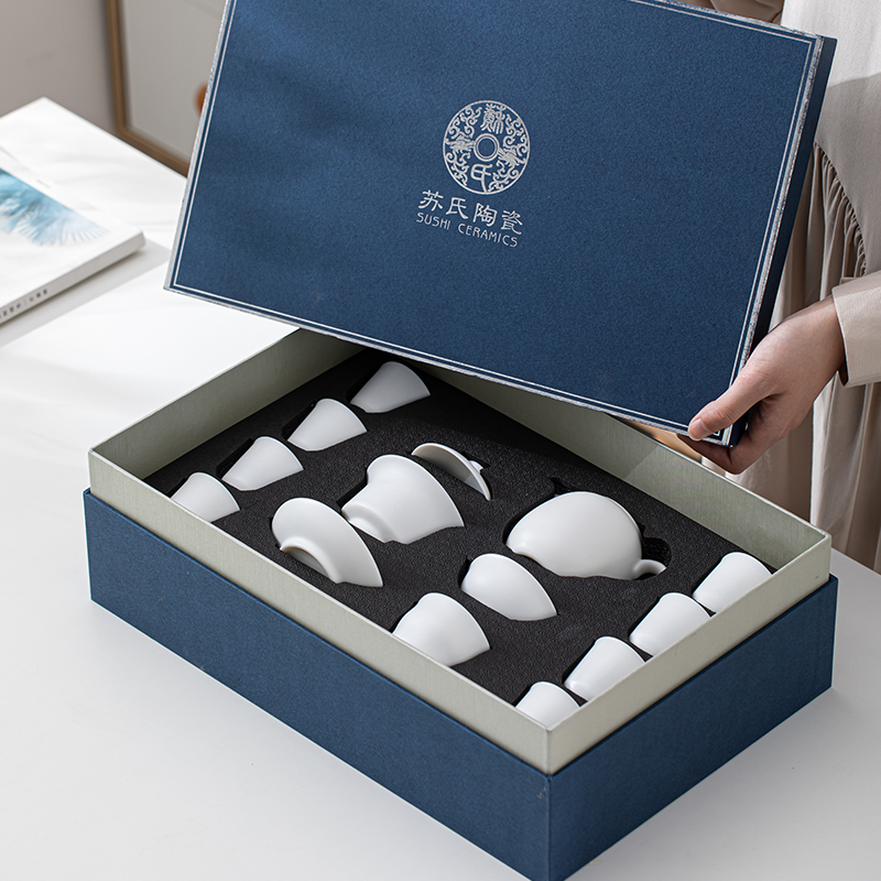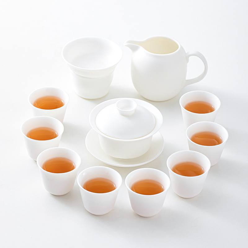 苏氏陶瓷(SUSHI CERAMICS)J0444茶具套装白瓷盖碗8杯礼盒装(单位:套) 白色