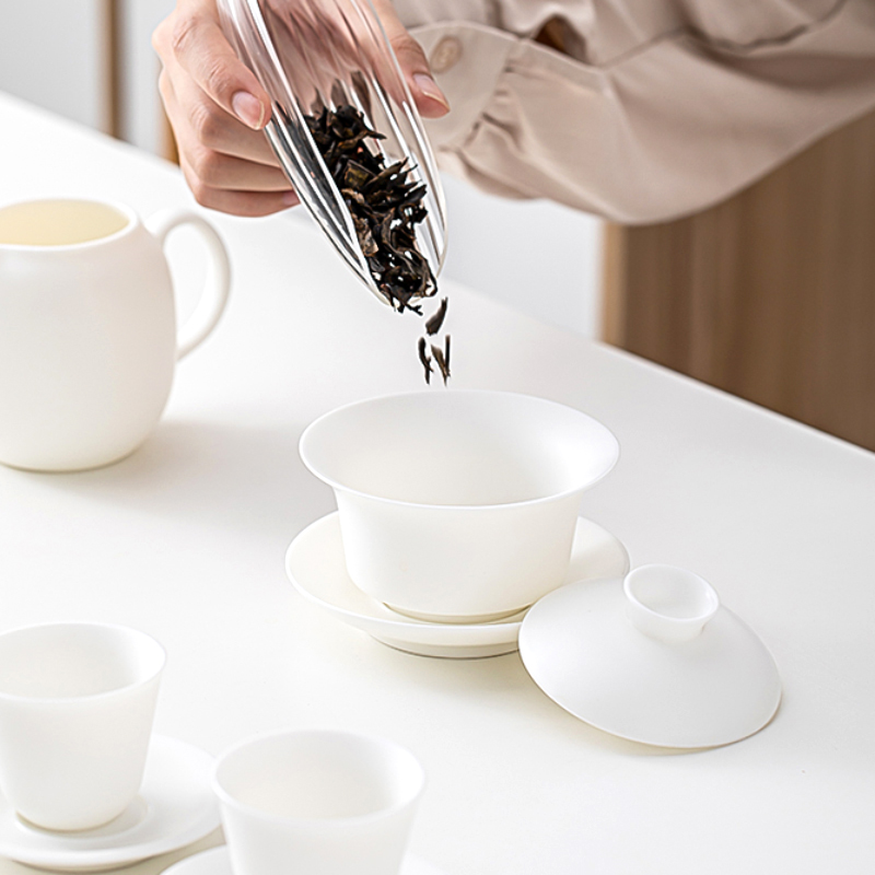 素烧白瓷茶具套装,以其纯净的白色和细腻的质感,为您的品茶时光增添一抹高雅。手工制作,每件作品都独一无