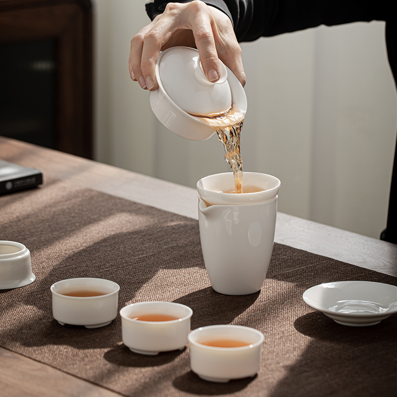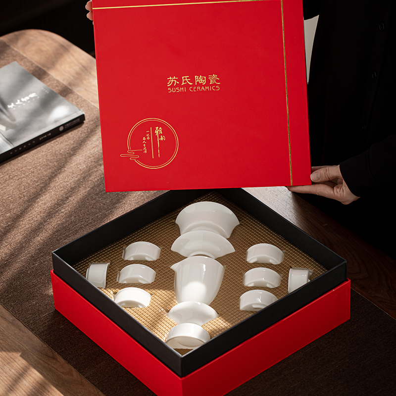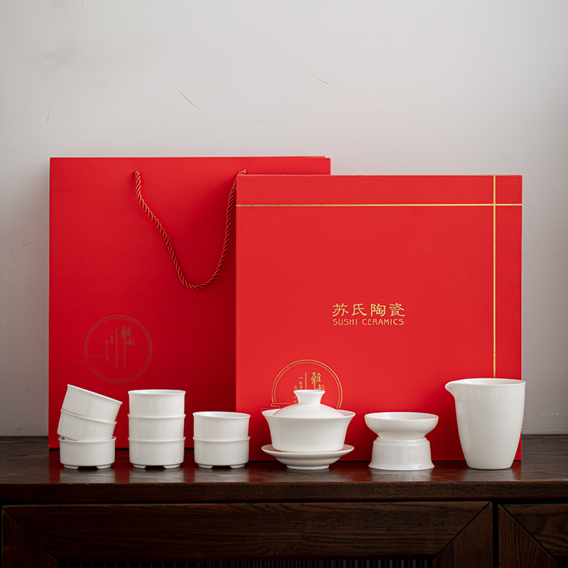 苏氏陶瓷(SUSHI CERAMICS)J0432茶具套装羊脂玉瓷盖碗茶杯礼盒装(单位:套) 白色