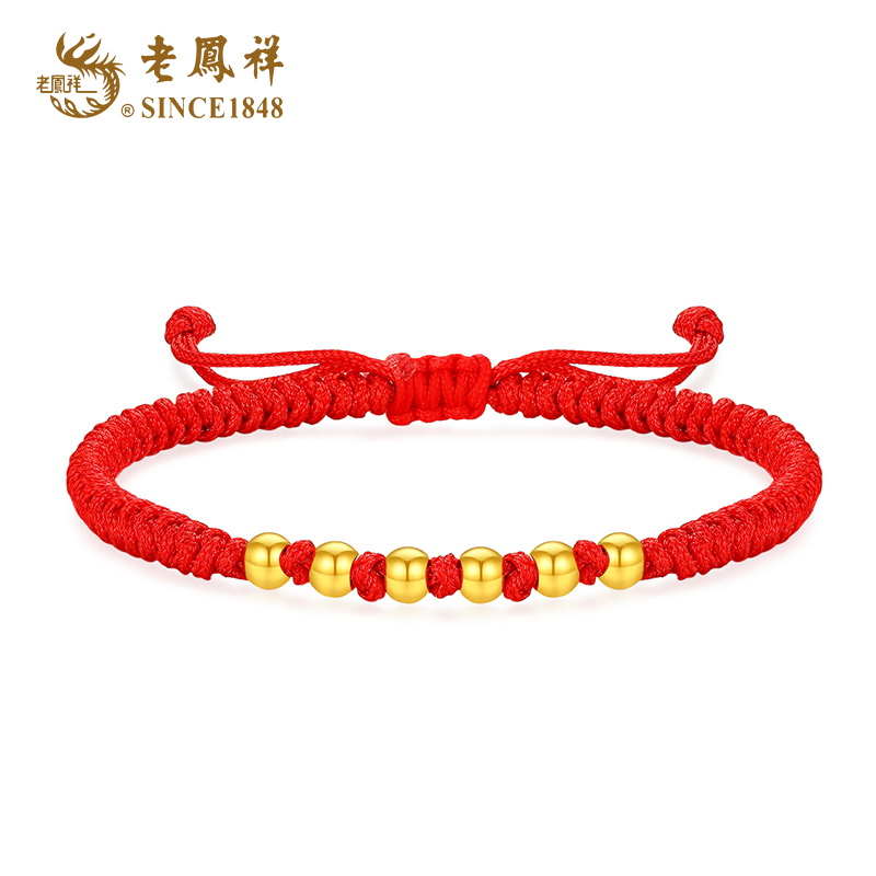 老凤祥足金999<六六大顺>经典转运红绳手绳约0.2-0.3g LFX000123(单位:件)