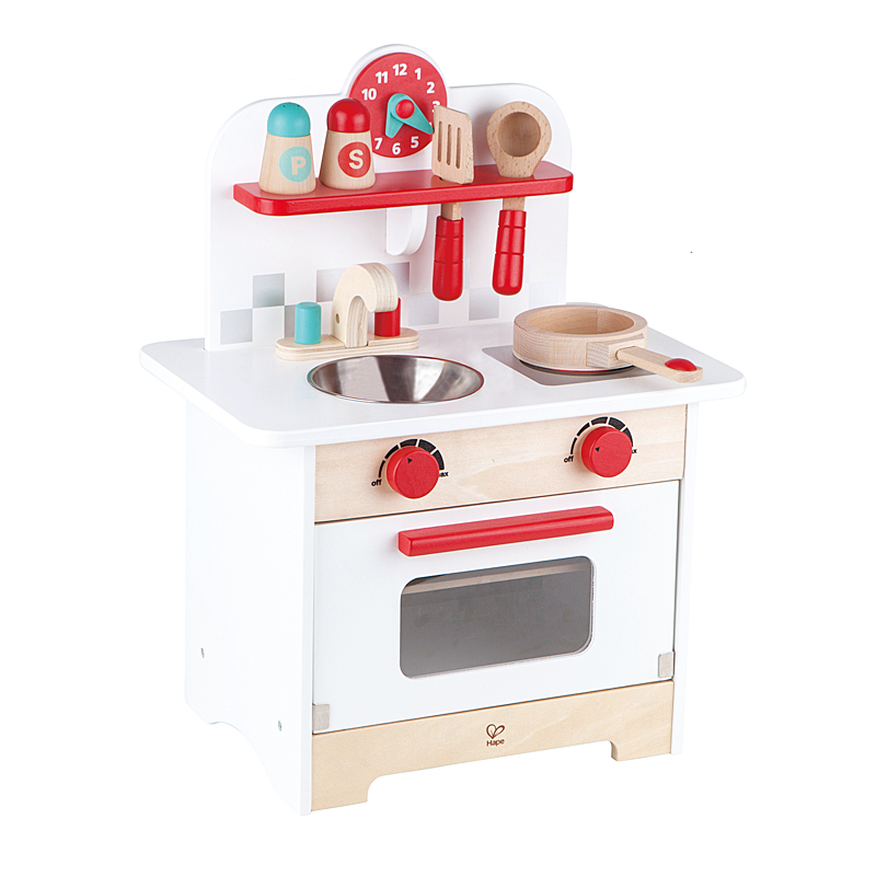 Hape(德国)E8118 3岁以上儿童厨房过家家玩具 生日礼物 木制 复古红白小厨房(单位:套)
