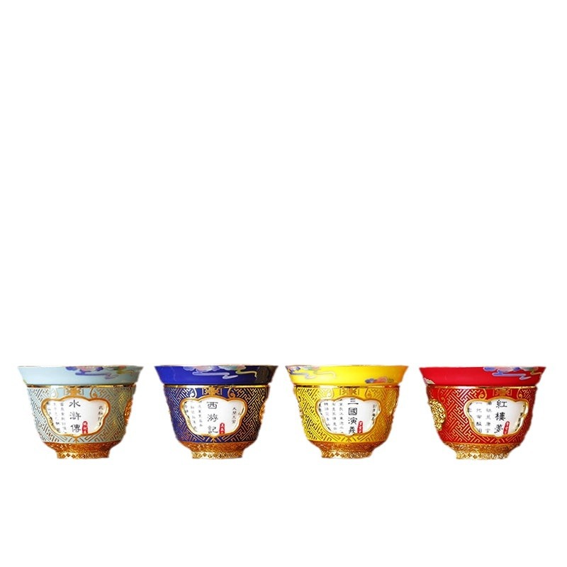 四大名著杯整体器型以经典的盖碗为原型,经过作者的精心演绎重新设计而成,给人以庄重、典雅大气、沉稳的感 -